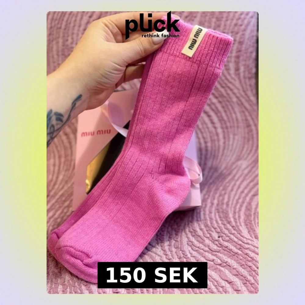 Snygga ribbstickade strumpor från Miu Miu i en härlig rosa färg. Strumporna har en klassisk form och är prydda med en diskret Miu Miu-logga upptill. Perfekta för att addera lite färg till din outfit.