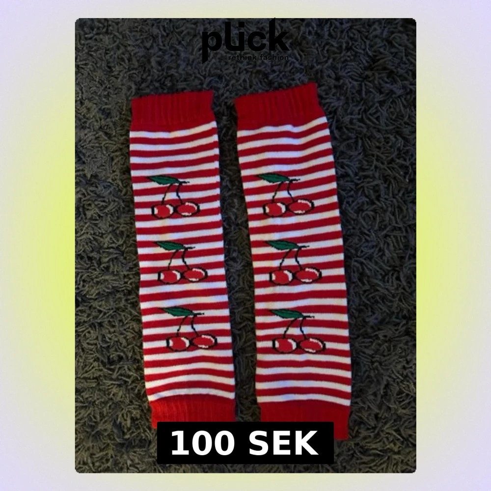 Randiga strumpor med körsbärsmotiv