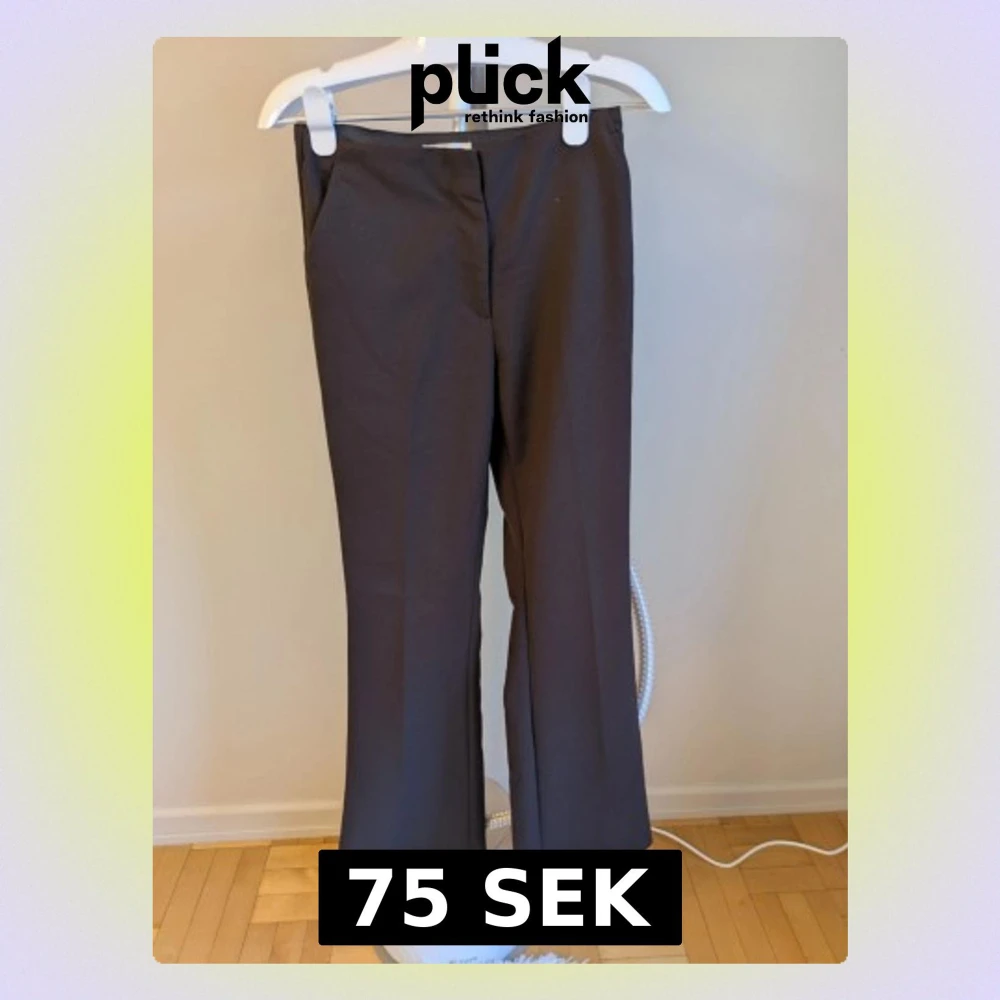 Snygga bruna kostymbyxor med raka ben och pressveck framtill. Byxorna har diskreta fickor bak och stängs med hake och dragkedja. Perfekta för en clean och stilren look. Materialet känns mjukt och har lite stretch för extra komfort.