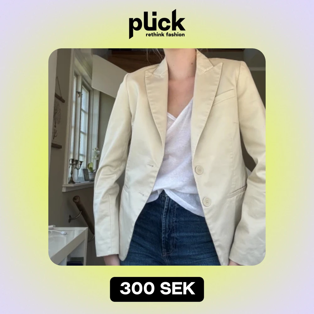 Underbar blazer i storlek 36 från HM, jag är 34 och den sitter lite over sized 🥰🥰🥰🥰 Denna passar verkligen till allt!! Så bra skick!