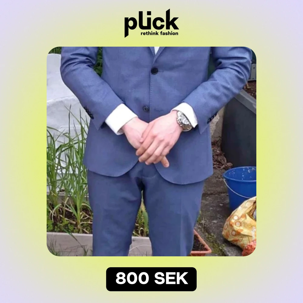 Kostym  - Säljer min mörkblåa kostym från dressman som jag har använt 1 gång. Säljer den då jag har vuxit ur den. Kavajen har storlek 42 short vilket betyder att den är kortare i ärmarna och byxorna 29-30. Kostymen passar någon runt 165-172. Nypris 2499kr