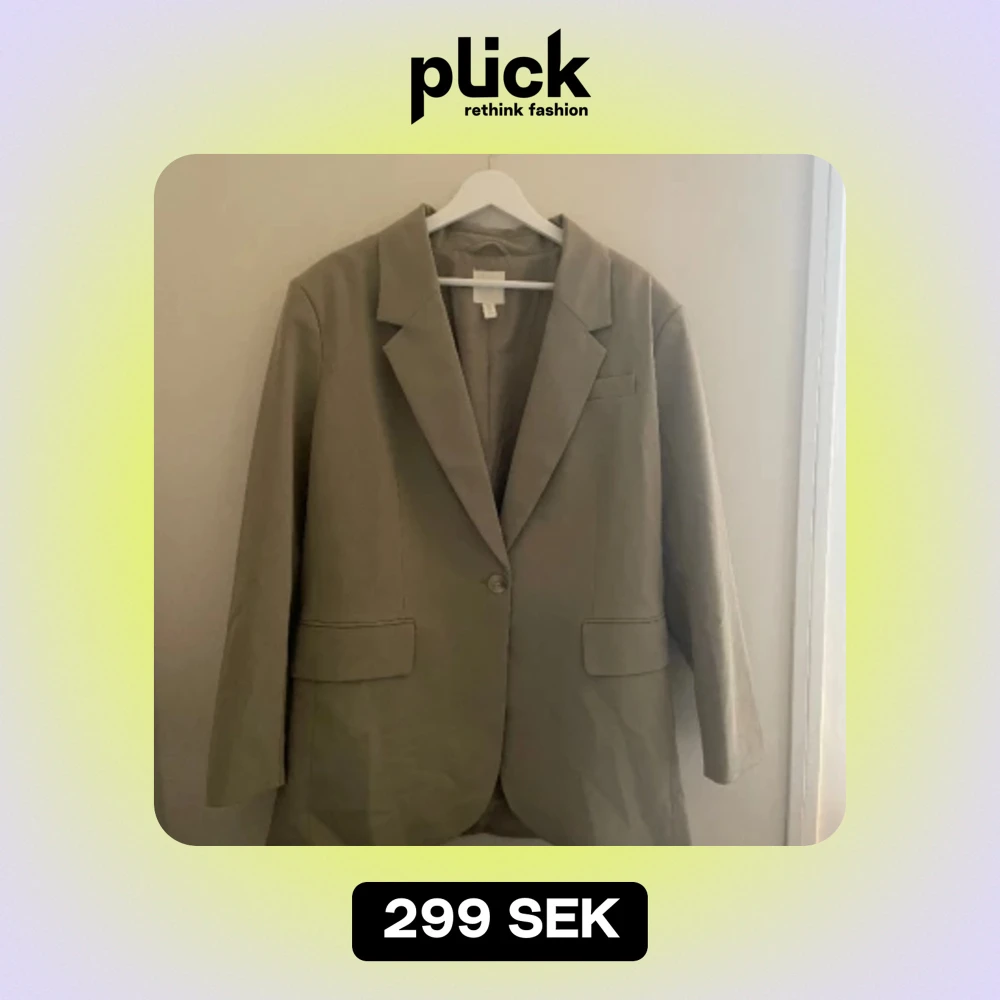 Olivgrön oversized kavaj. Använt 2-3 gånger. Storlek M, känns mer som en L i passformen. Är i ett fint skick.