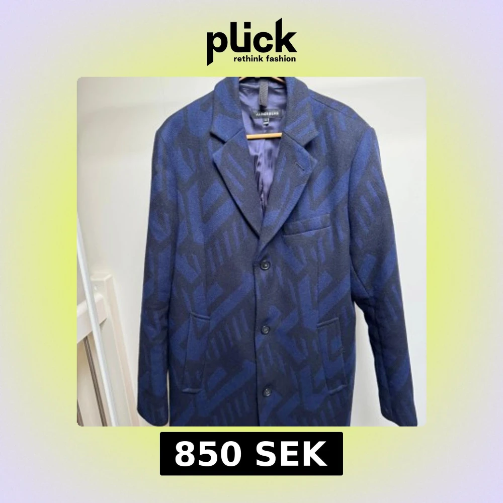 Säljer en snygg blå kavaj från J.Lindeberg med geometriskt mönster i mörkblått. Kavajen har klassisk krage, tre knappar framtill och tre fickor. Fodrad insida och tillverkad i ullblandning. Perfekt för dig som vill sticka ut med stil.