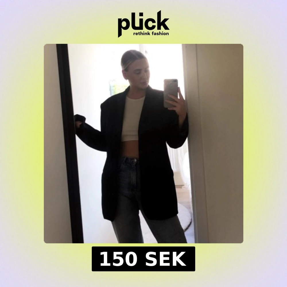 Elegant svart kavaj med tre knappar framtill och klassiska fickor. Perfekt för formella tillfällen eller som en stilren vardagskavaj. Passar bra till både byxor och jeans.