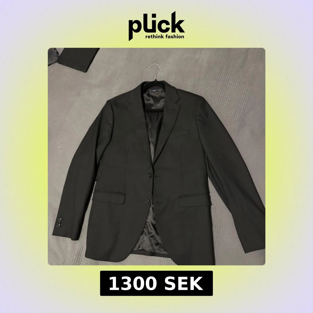 Elegant svart kostym från Riley med matchande kavaj och byxor. Kavajen har klassisk design med två knappar och fickor. Den vita skjortan är stilren och passar perfekt till kostymen. Kostymen är Slimfit, kavajen och skjortan är M storlek. Byxorna är 100 cm i längd och 45 cm i bredd. Kostymen är använd en gång. Säljs på grund av att den inte passar längre då jag har ökat i vikt. Passform: EU 48 passar 180-185cm