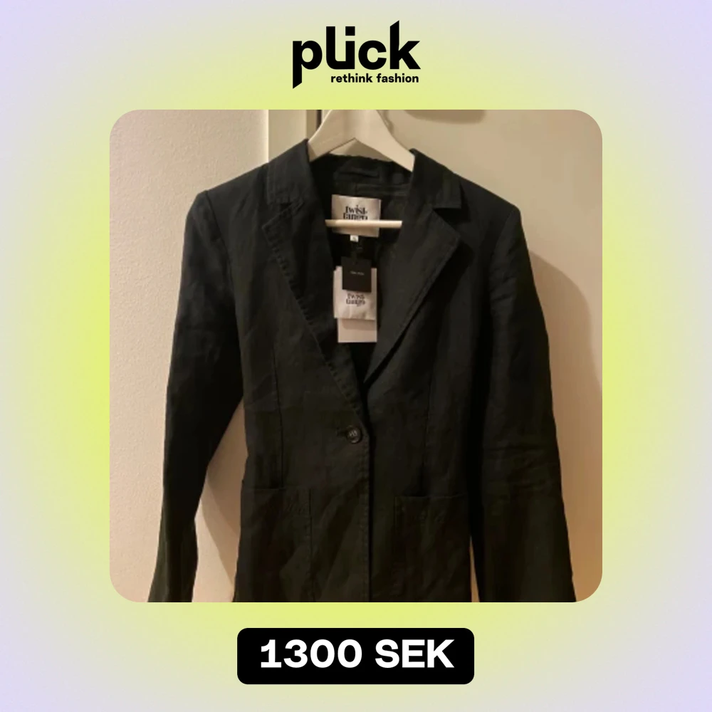 Snygg svart 100% linnekavaj med skärp i midjan. Kavajen har en enkel design med två fickor framtill och en knappstängning. Prislappen kvar, aldrig använd. Originalpris 2499kr.