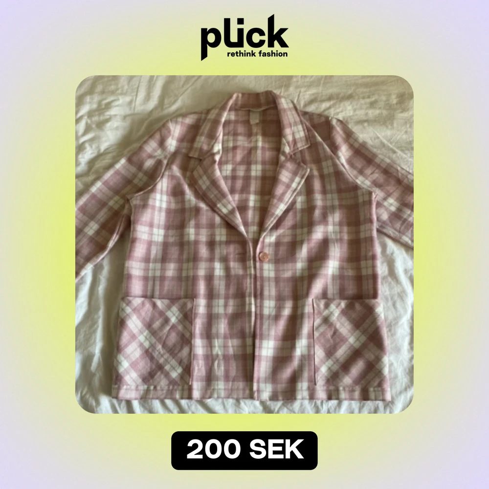 Rosa rutig retro kavaj köpt på Beyond Retro. Skulle säga att den är storlek M, passar även S om man vill ha den oversized.💅