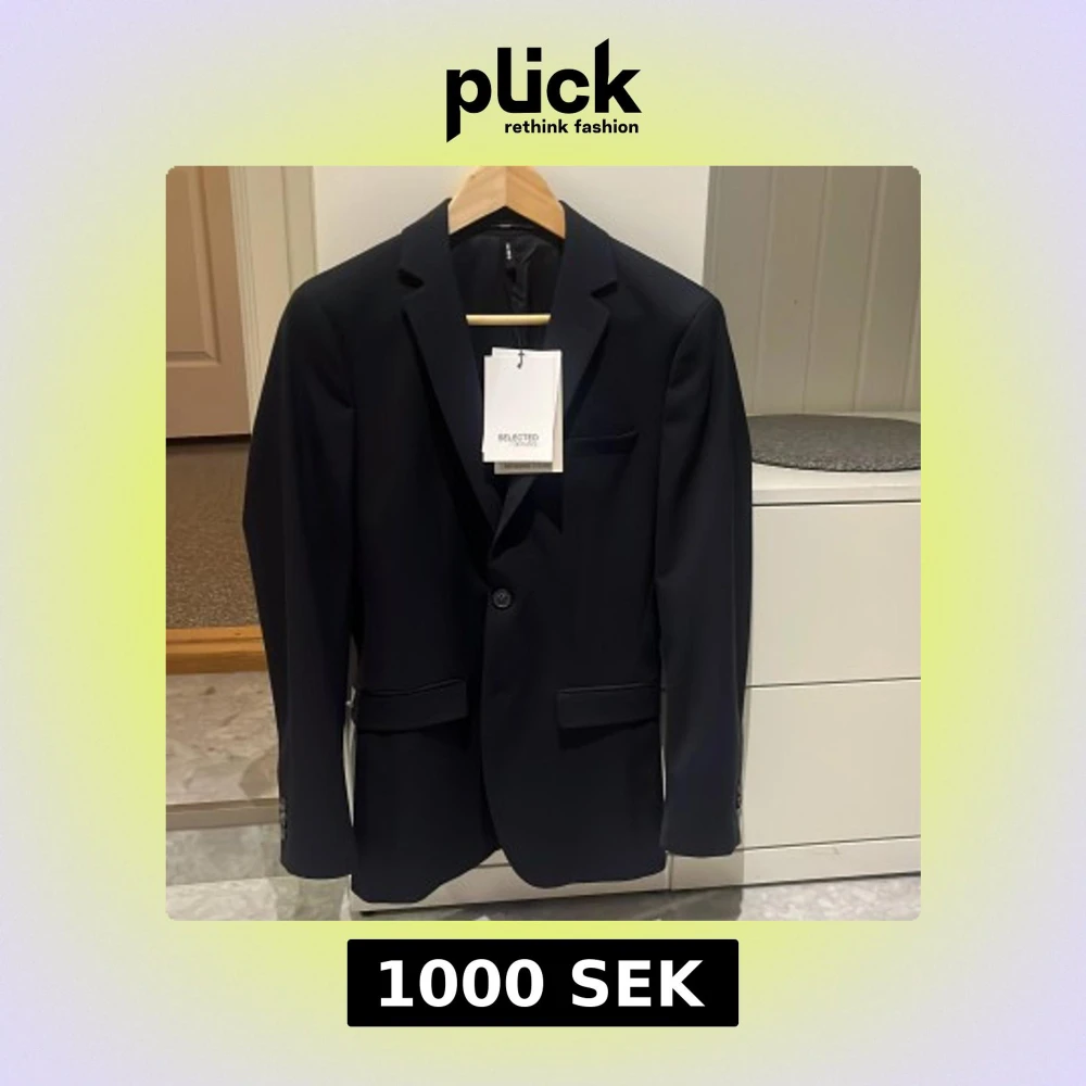 Snygg marinblå kavaj från Selected Homme. Kavajen har två knappar framtill, klassiska fickor med lock och en bröstficka. Slim passform och stilren design, perfekt för dig som vill ha en modern look. Aldrig använd, prislappen kvar.