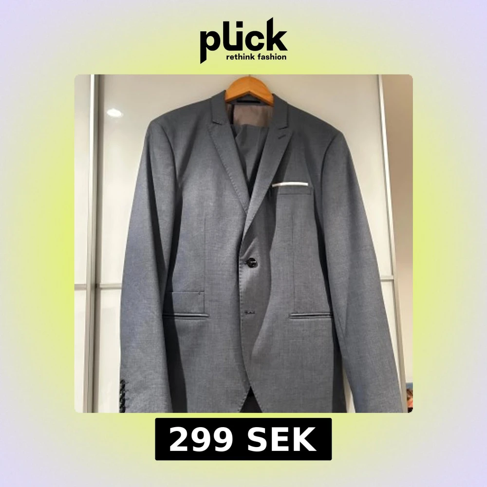 Snygg kostym från Selected Homme med klassisk kavaj och matchande byxor. Kavajen har två knappar, smala slag och fickor med lock samt en vit näsduk i bröstfickan. Fodret är mörkblått och glansigt. Perfekt för dig som vill ha en stilren och modern look.