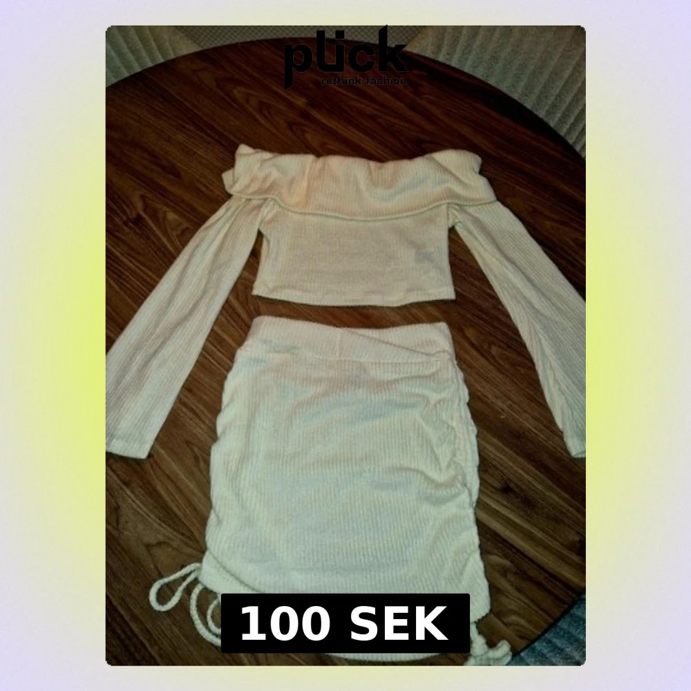 Säljer ett tvådelat set i ribbad beige tyg.