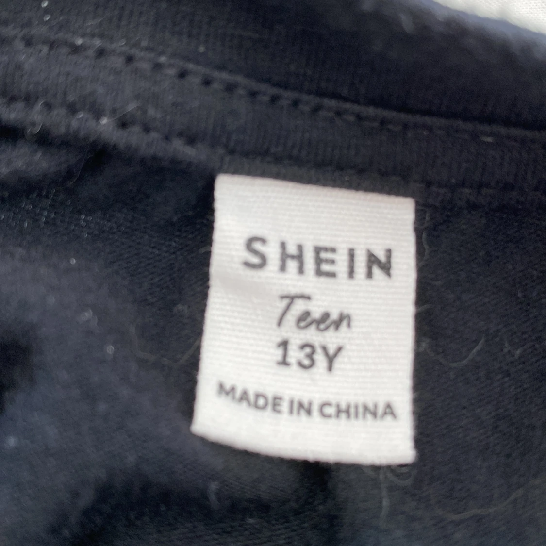 En enkel svart t-shirt från SHEIN Teen i storlek 13Y. Modellen är oversized med korta ärmar och rund hals. Tillverkad i mjuk bomull som är skön mot huden. Perfekt för en chill och avslappnad stil. Oversized T-shirt