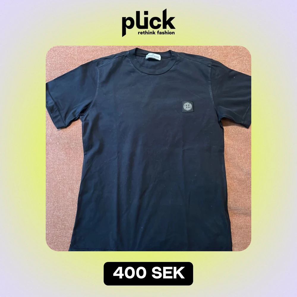 Säljer en stilren svart t-shirt från Stone Island Junior. Den har en klassisk rund hals och korta ärmar. På bröstet finns det ikoniska Stone Island-märket. Perfekt för en casual look eller att styla upp med en jacka.