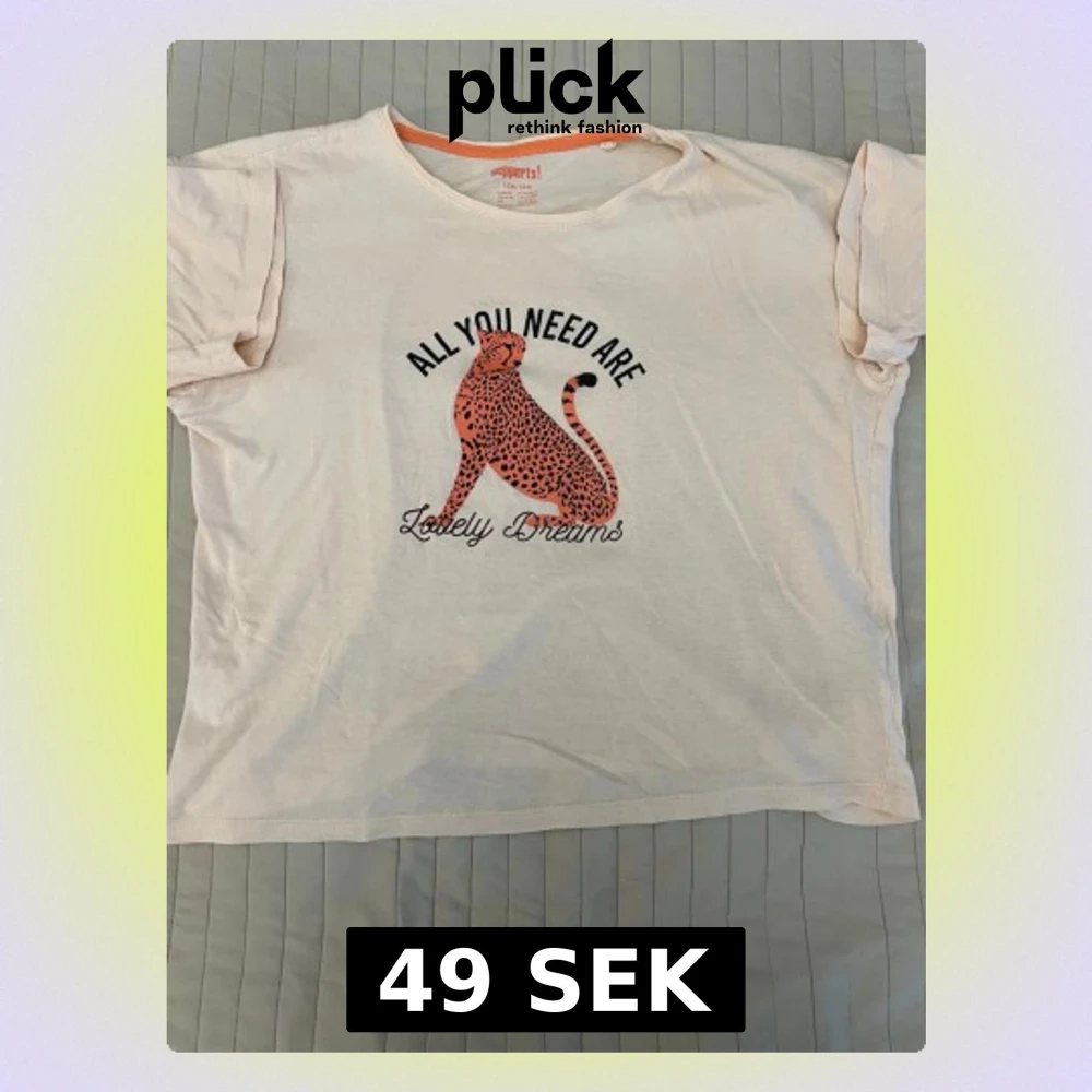 Vit t-shirt från Pepperts med coolt leopardtryck och texten 'All you need are lovely dreams' på bröstet. Klassisk rund halsringning med kontrastfärgad kant i orange. Tillverkad i mjuk bomull och har korta ärmar.