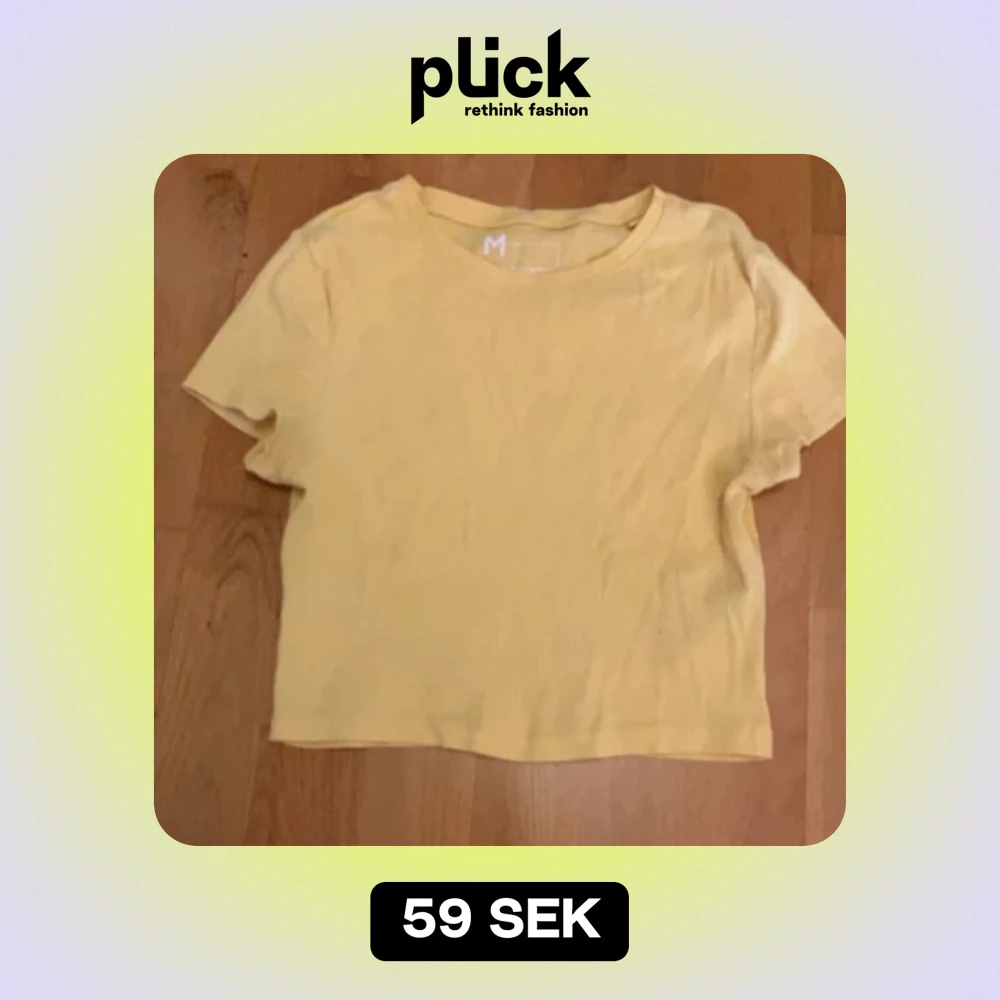 En gul t-shirt som är lite kortare❤️ Storlek M men skulle mera säga att det passar till xs, S och M💕 Skriv för fler bilder