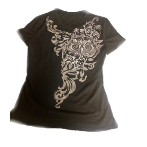 Svart t-shirt med tryck - SÀljer en svart tshirt med ett snyggt tryck. Vet inte storelk pÄ tröjan, men skulle sÀga att den passar S.