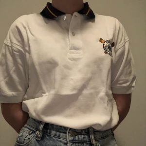 Superfin vit herr pikétröja i storlek S men som också är snygg att ha oversized