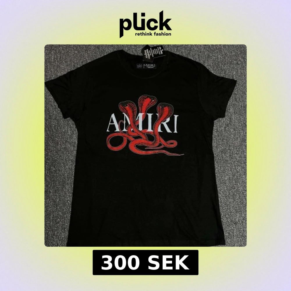 Svart t-shirt från Amiri med stor vit logga och en fet röd orm-grafik på bröstet. Klassisk rund hals och korta ärmar. Perfekt statement-plagg för dig som vill sticka ut. Mjuk och skön bomullskvalitet.