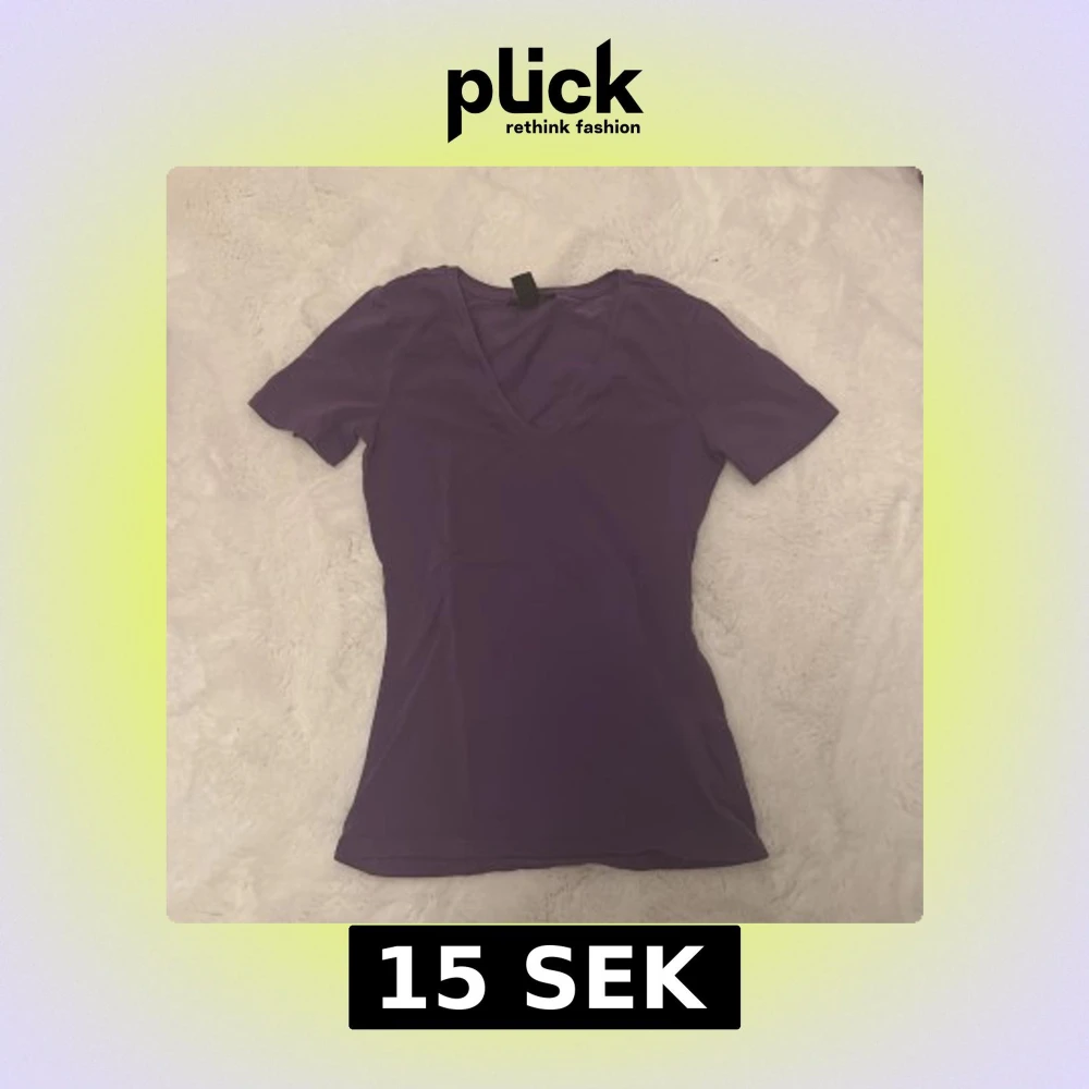Snygg lila t-shirt från Amisu i storlek XS. Modellen är figurnära med korta ärmar och v-ringad hals. Tillverkad i mjuk bomull som känns skön mot huden. Perfekt att matcha med jeans eller shorts för en chill look.