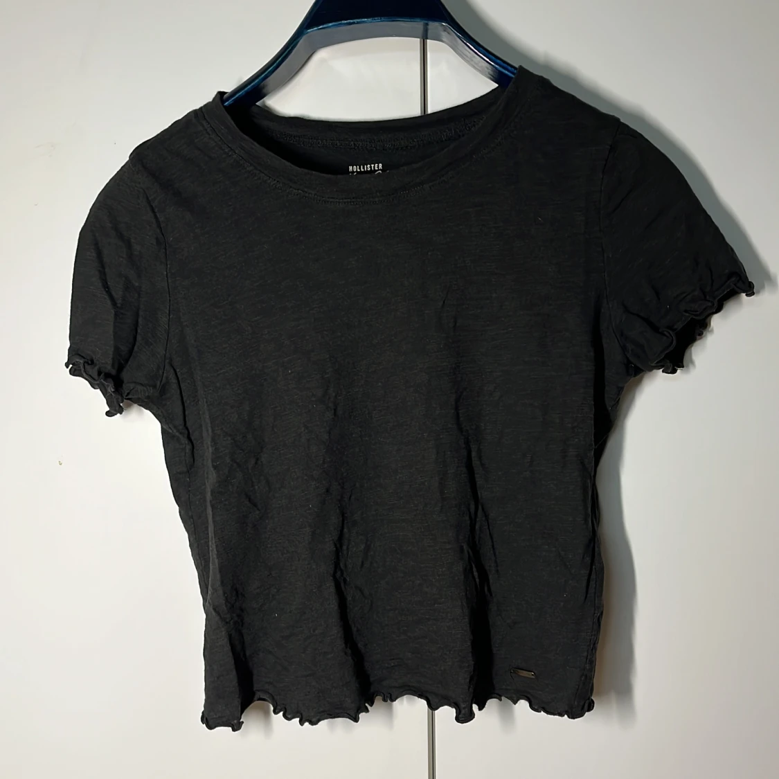 Basic svart baby tee från hollister med vågiga kanter. Använd men i superbra skick. Säljs då den inte kommer till användning. Storlek: XS