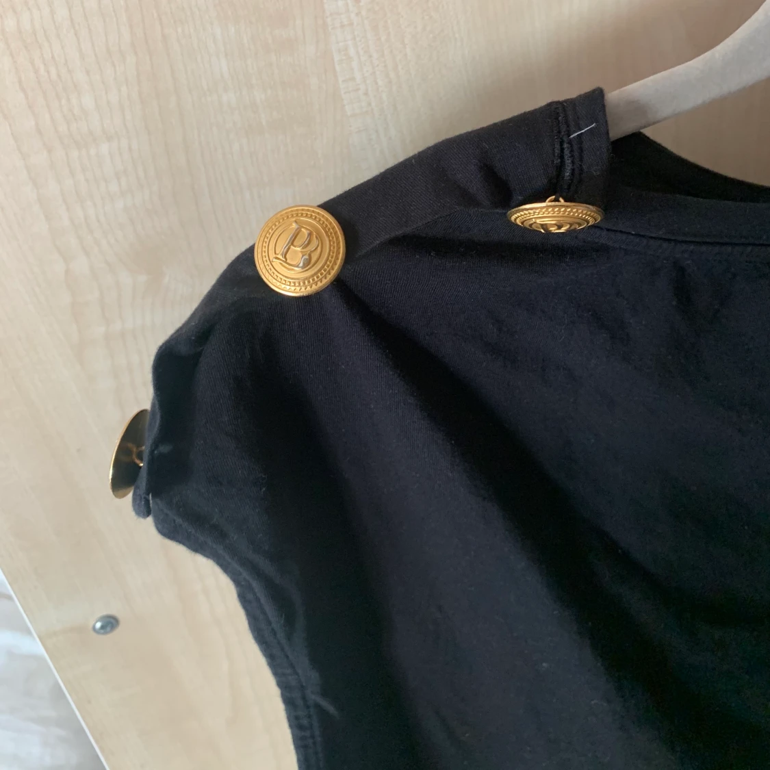 Svart T-shirt från Balmain med guldknappar vid axlarna, använd några få gånger bara så tröjan är i bra skick!