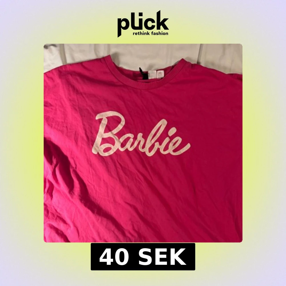 Barbie t shirt från HM u storlek L,en skulle säga att den är större.