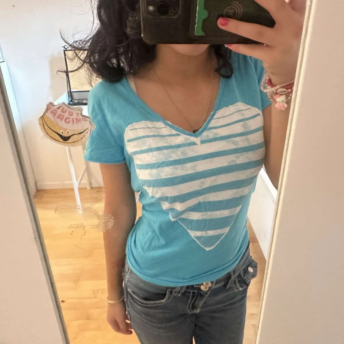 jätte söt beachy y2k tröja! passar perfekt nu till sommaren eller till skolstarten🥰🥰💗