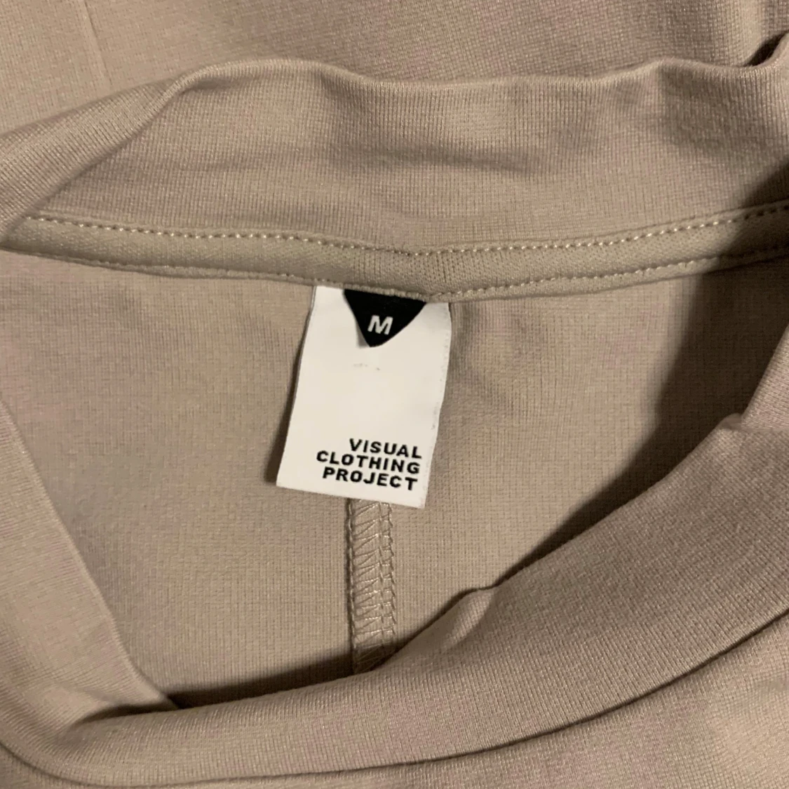Säljer en beige topp från Visual Clothing Project i storlek M. Toppen har en loose passform, korta ärmar och rund halsringning. Tillverkad i mjukt material som känns skönt mot huden. Enkel och stilren design som passar till många olika outfits.