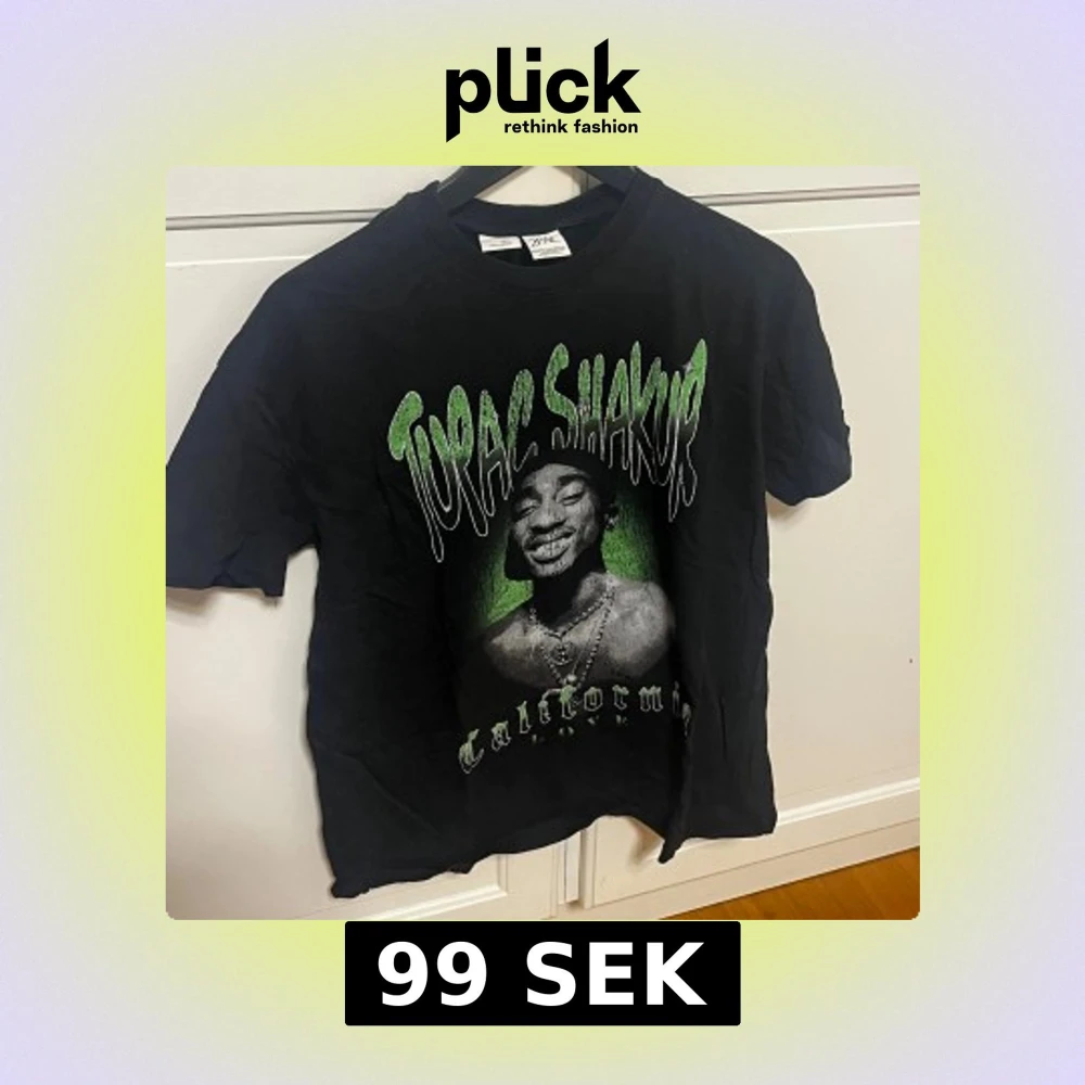 Cool svart t-shirt från Bershka med stort 2Pac Shakur-tryck i grönt och vitt framtill. Motivet har en grön bakgrund och texten 'California Love' under bilden. Rund hals och klassisk passform, perfekt för dig som gillar streetwear och hiphop.