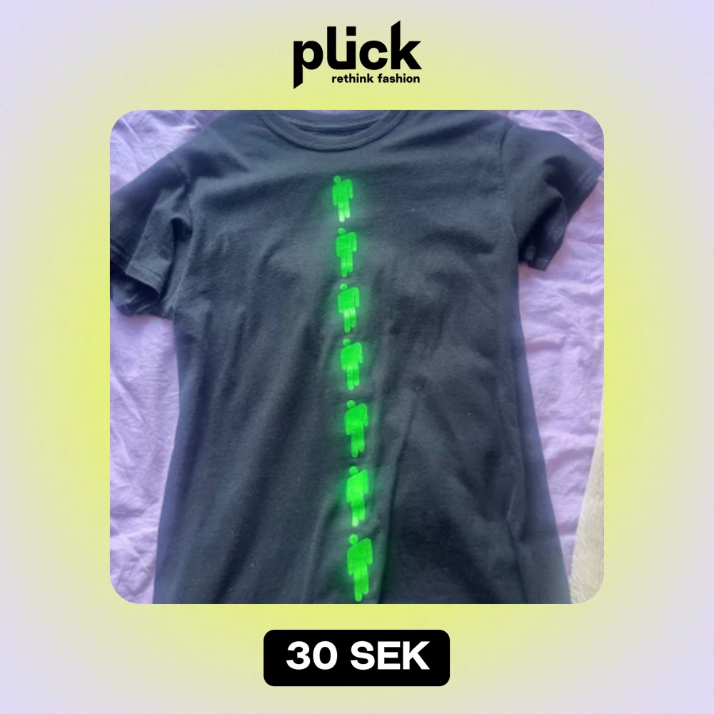 billie eilish t-shirt med gröna blosh på, jättefin! ⭐️