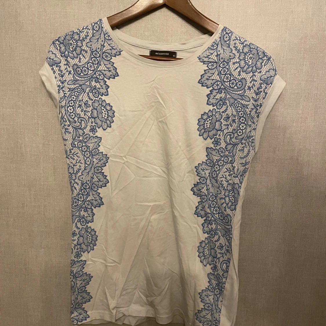 Blå t-short med blommigt mönster på. Väldigt gullig och är i fint skick. Köpt i polen för några sommrar sen