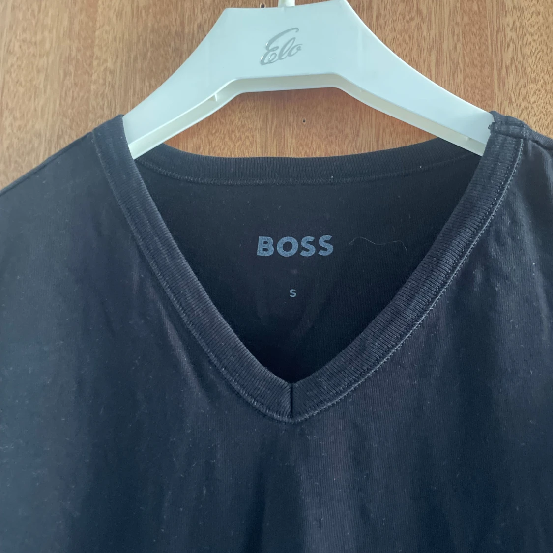 Svart t-shirt från BOSS med v-ringning och diskret logga på bröstet. Klassisk passform och tillverkad i mjuk bomull. Perfekt för en clean och stilren look.