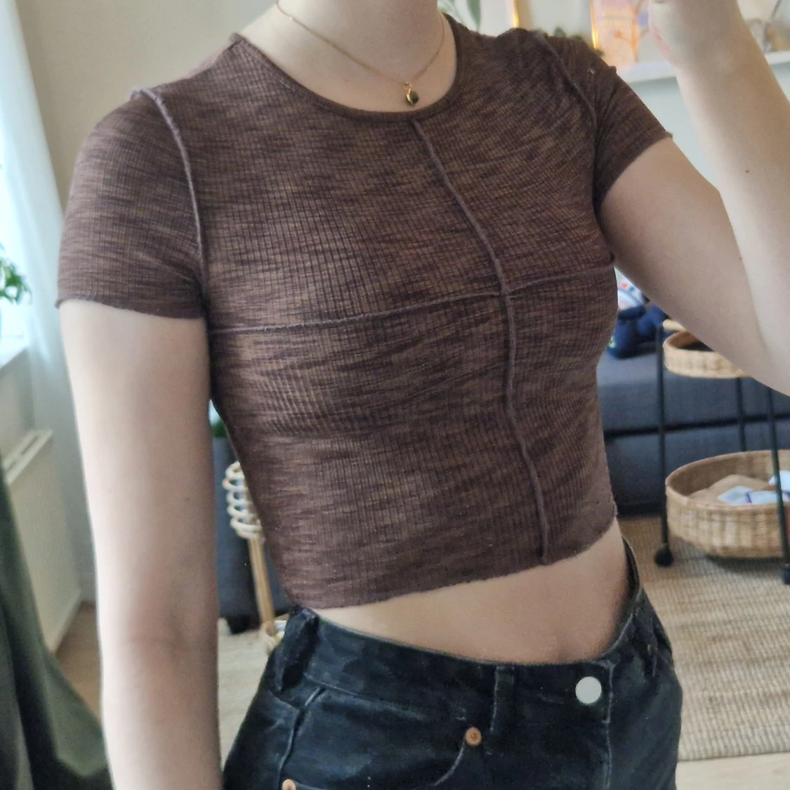 Kortärmade brun tröja med snygga detaljer. Sparsamt anbänd, inget slitage. Köpt från H&M.
