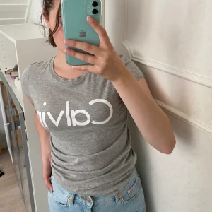 Fin Calvin Klein tröja. Grå med vitt tryck. Den är i storlek XS men passar en S också. Den är i fint skick! Vi kan diskutera hur vi gör med frakten annars kan den hämtas i Sundsvall 📍 🧚🏼