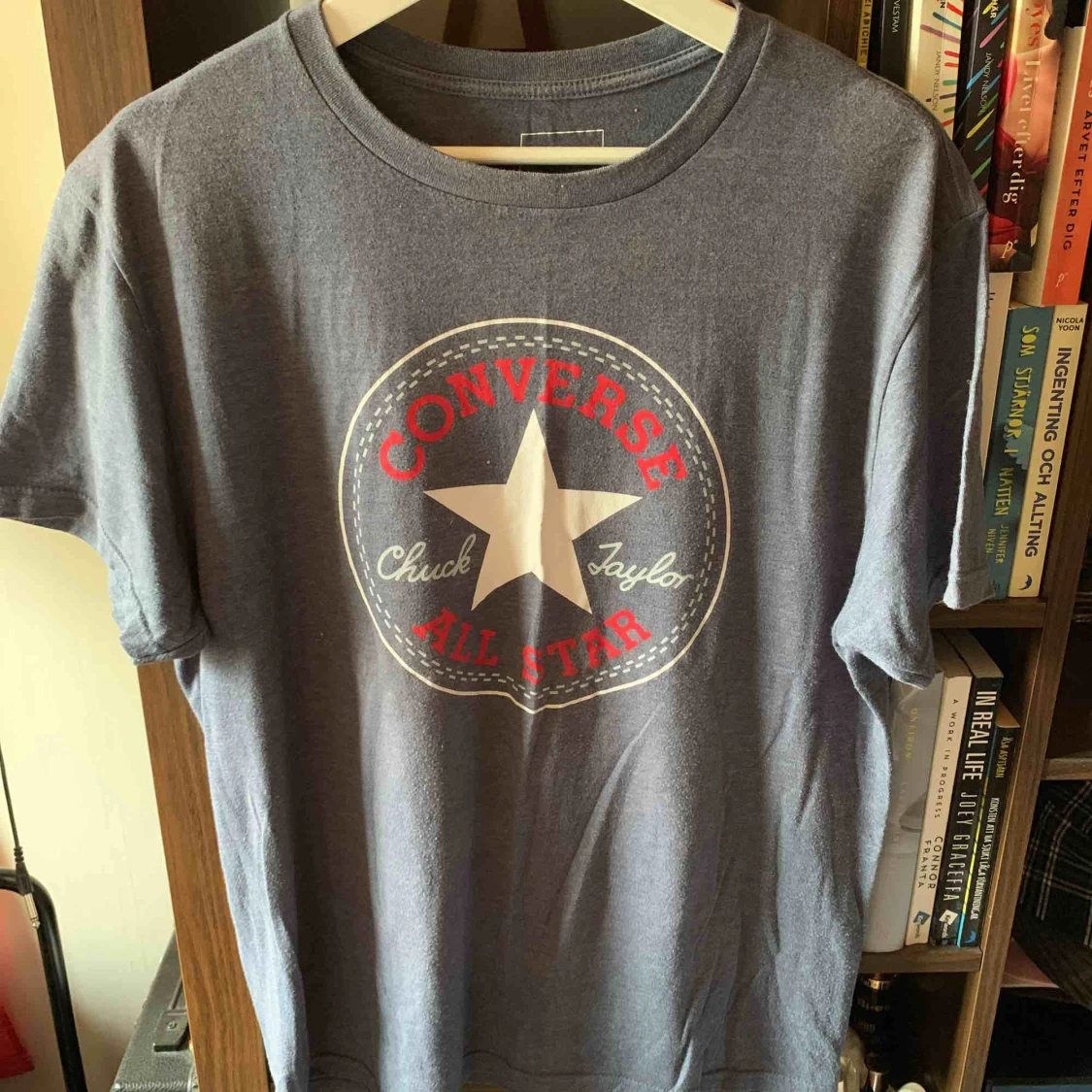 Marinblå t-shirt från Converse i storlek M. Säljs pga används inte längre. Kan mötas upp i Stockholm, annars står köpare för frakt.