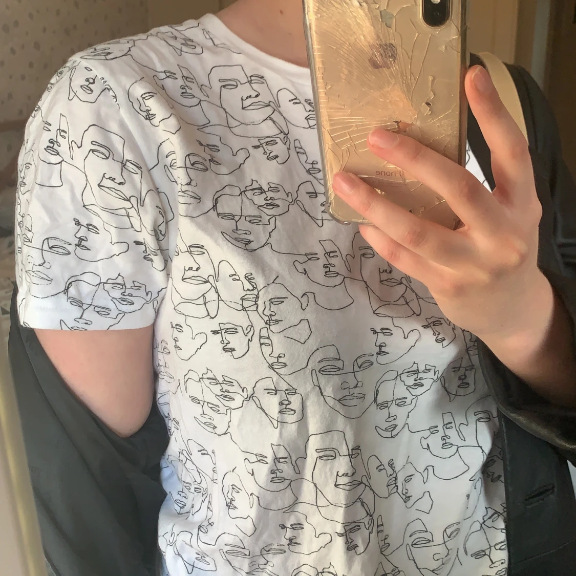 Unik t-shirt med ansiktstryck. Säljes pga rensar ur min garderob. Köparen står för frakt.☺️