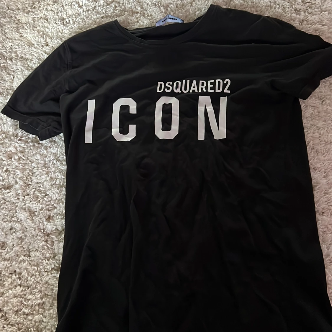 Svart t-shirt från Dsquared2 med stor vit ICON-print på bröstet och klassisk rund hals. Snygg och enkel design som ger en cool vibe. Tillverkad i mjuk bomull för skön känsla hela dagen. Perfekt för dig som gillar streetwear och statement-plagg.