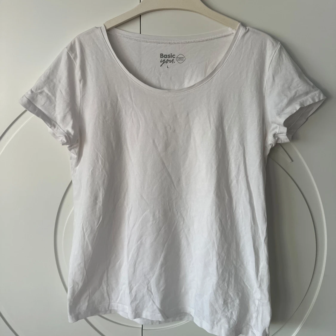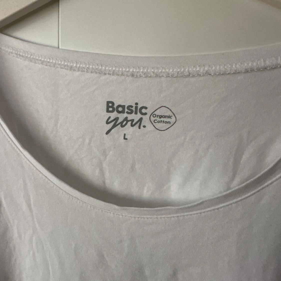Säljer en klassisk vit t-shirt från Basic You i ekologisk bomull. Perfekt basplagg med rund hals och korta ärmar. Skön och enkel att matcha med allt. Passar perfekt för en avslappnad stil. Säljs bara ihop!⚠️
