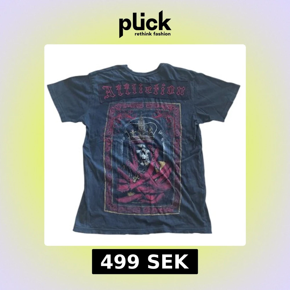 En Affliction T-shirt i storlek XL. Tröjan är i fint skick med inga skador eller fläckar. Vid fler frågor eller mått tveka inte att kontakta oss!