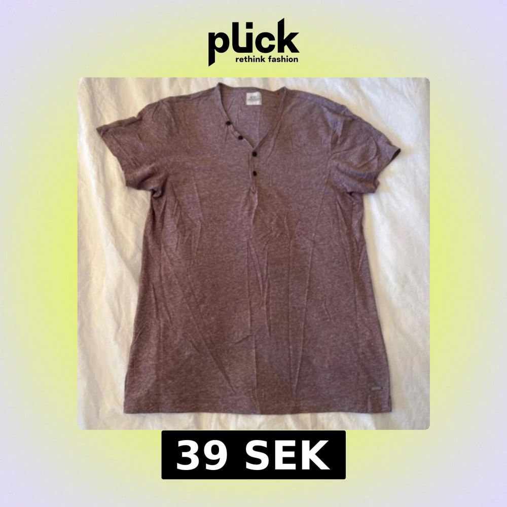 Snygg lila t-shirt med v-ringad hals och tre svarta knappar framtill. T-shirten har korta ärmar och är gjord i mjuk bomull, perfekt för en chill och avslappnad stil. Passar dig som gillar enkel design med en liten twist.