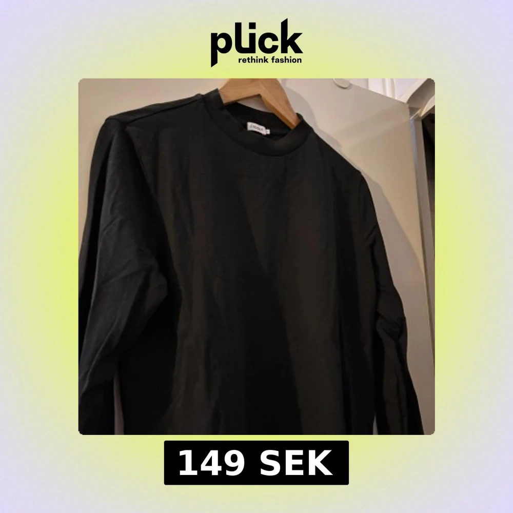 Säljer en stilren svart långärmad tröja med rund hals. Perfekt för en minimalistisk look och passar till många olika outfits. Långärmad i storlek XS, passar även S.