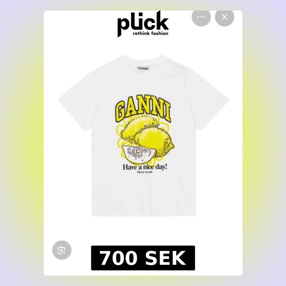 Snygg vit t-shirt från Ganni använd exakt två gånger och inga defekter köpte för 1200kr skriv för fler bilder💞💞