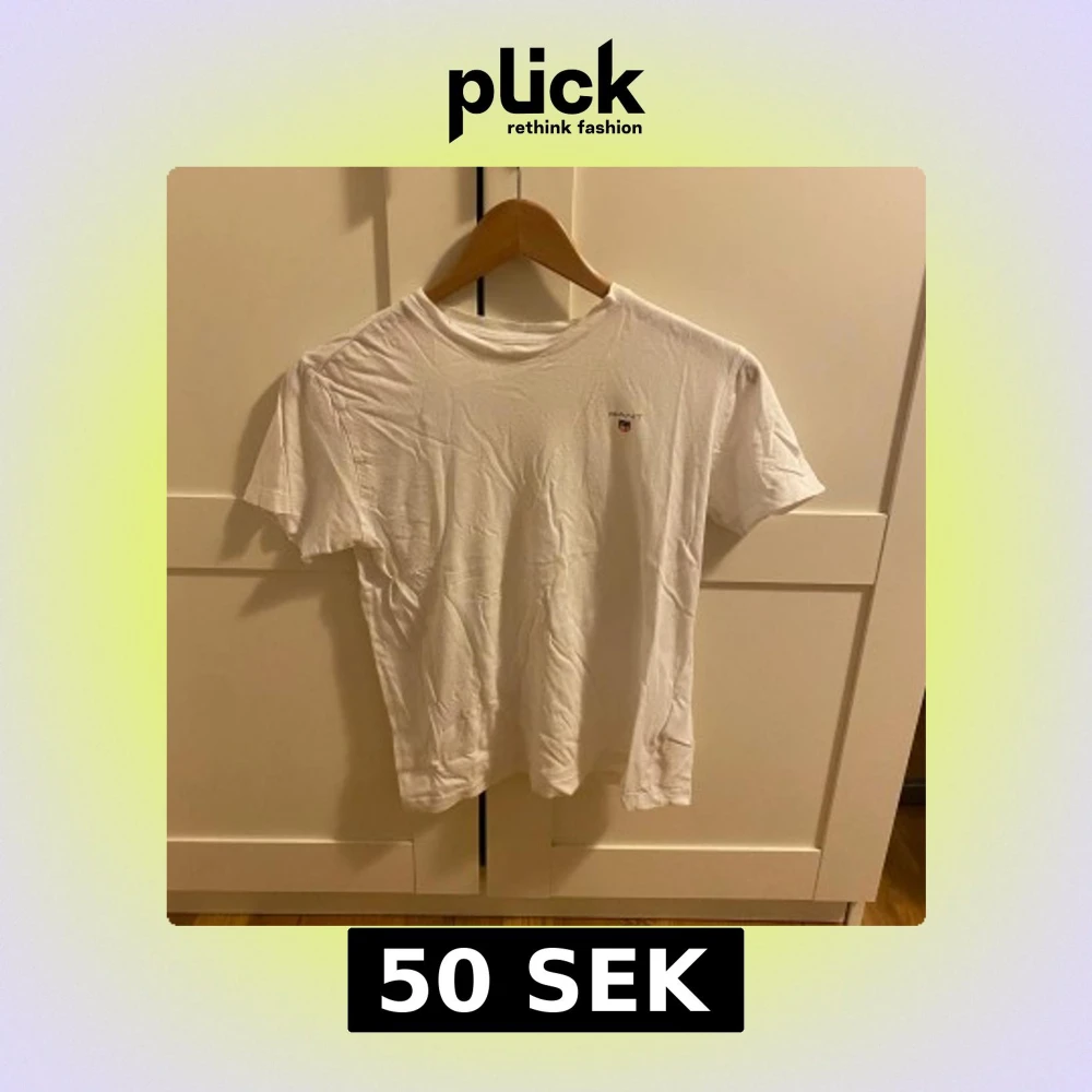 Klassisk vit t-shirt från GANT med liten broderad logga på bröstet. T-shirten är i mjuk bomull och har rund hals och korta ärmar. Perfekt basic-plagg med clean look och diskret branding.