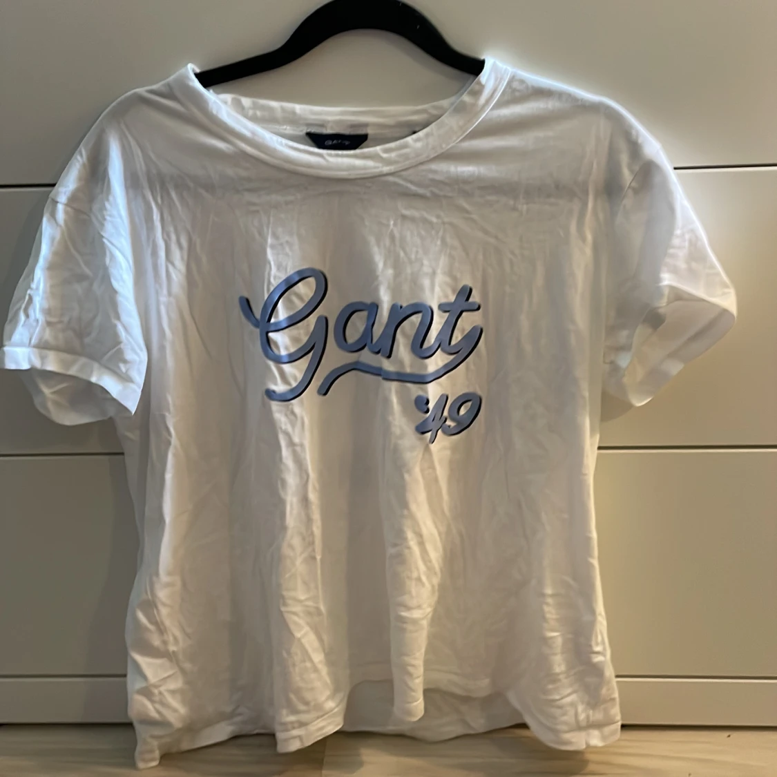 Vit Gant tröja i bra skick, då jag använt den fåtal gånger💕stl 176cm 16år men passar XS S. Tvättas och strycks innan jag skickar. TRYCK INTE PÅ KÖP NU🫶🏼