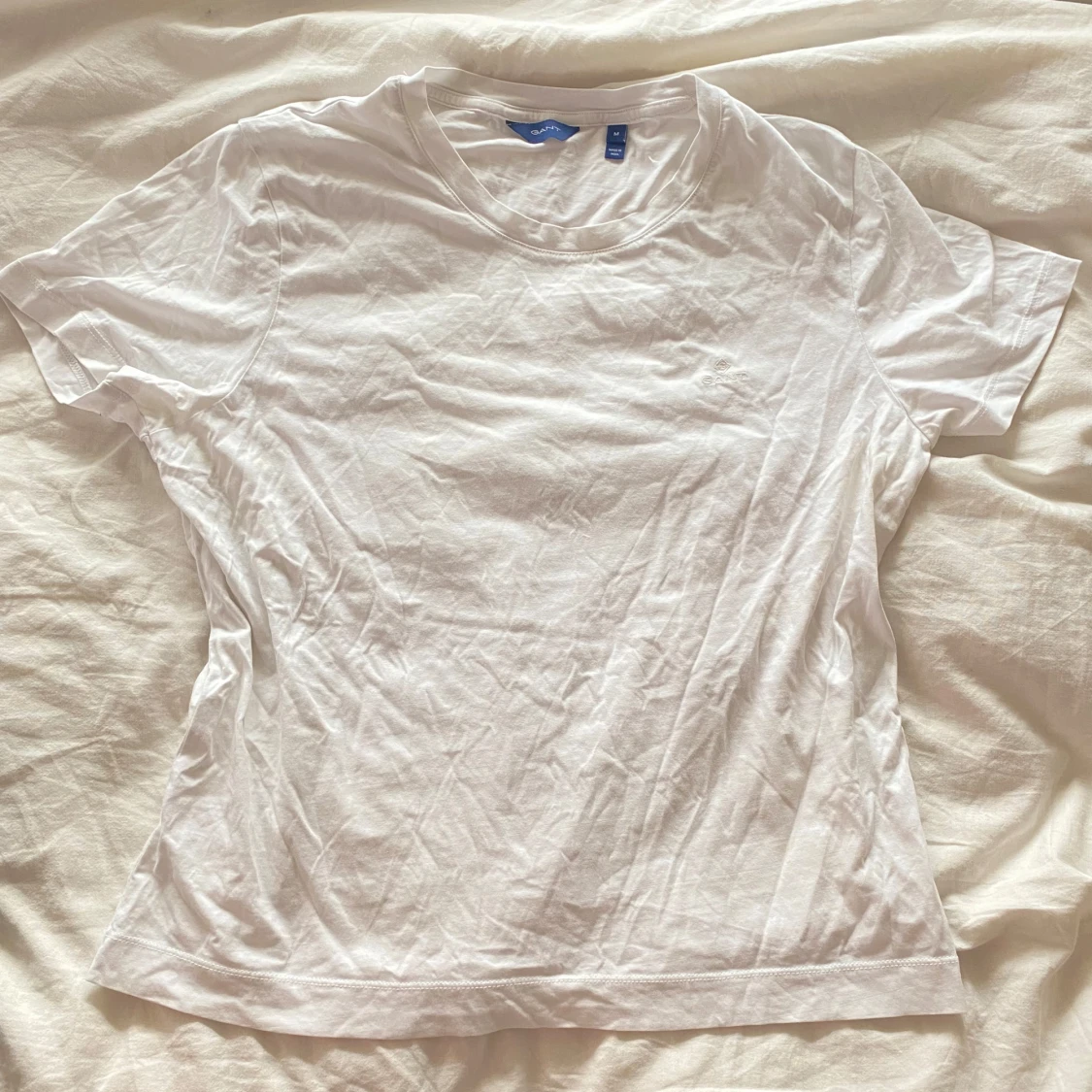 Klassisk vit t-shirt från GANT i mjuk bomull. T-shirten har rund halsringning, korta ärmar och en diskret broderad GANT-logga på bröstet. Perfekt basic-plagg med clean look och skön passform.