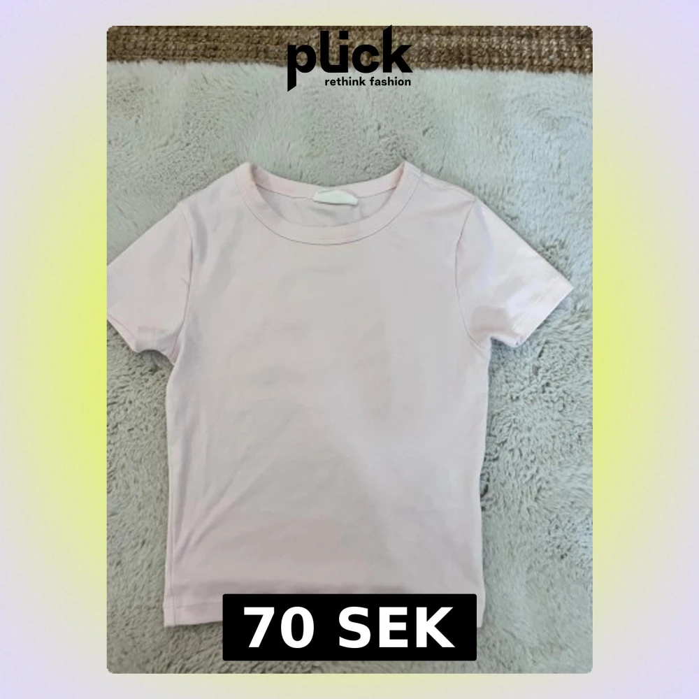 En enkel och fräsch ljusrosa t-shirt med rund hals och korta ärmar.