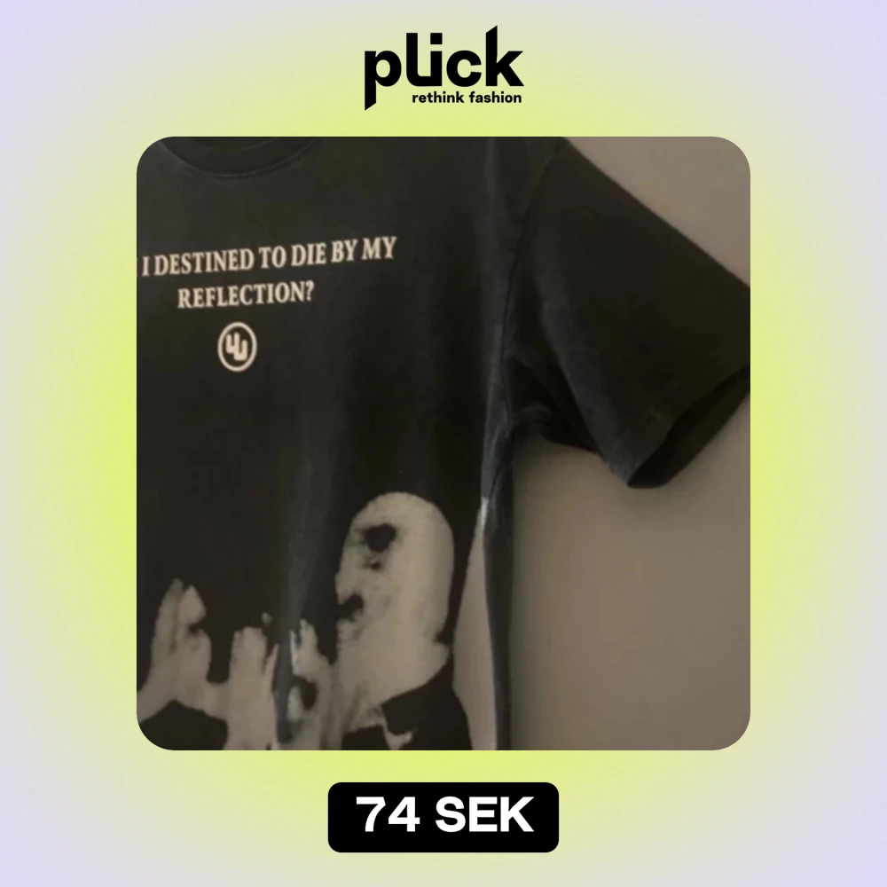 Black/grey graphic t-shirt good quality new size L tex quote “ am I destined to die by my own reflection” GRAPHIC TEE
