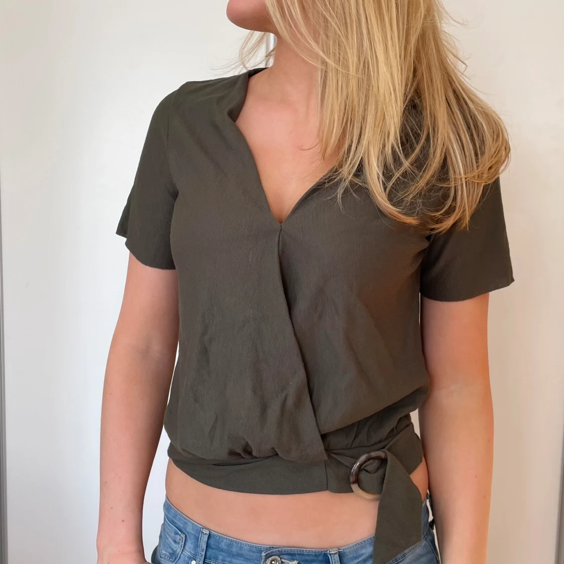 Grön topp/tshirt med knytdetalj från Mango!