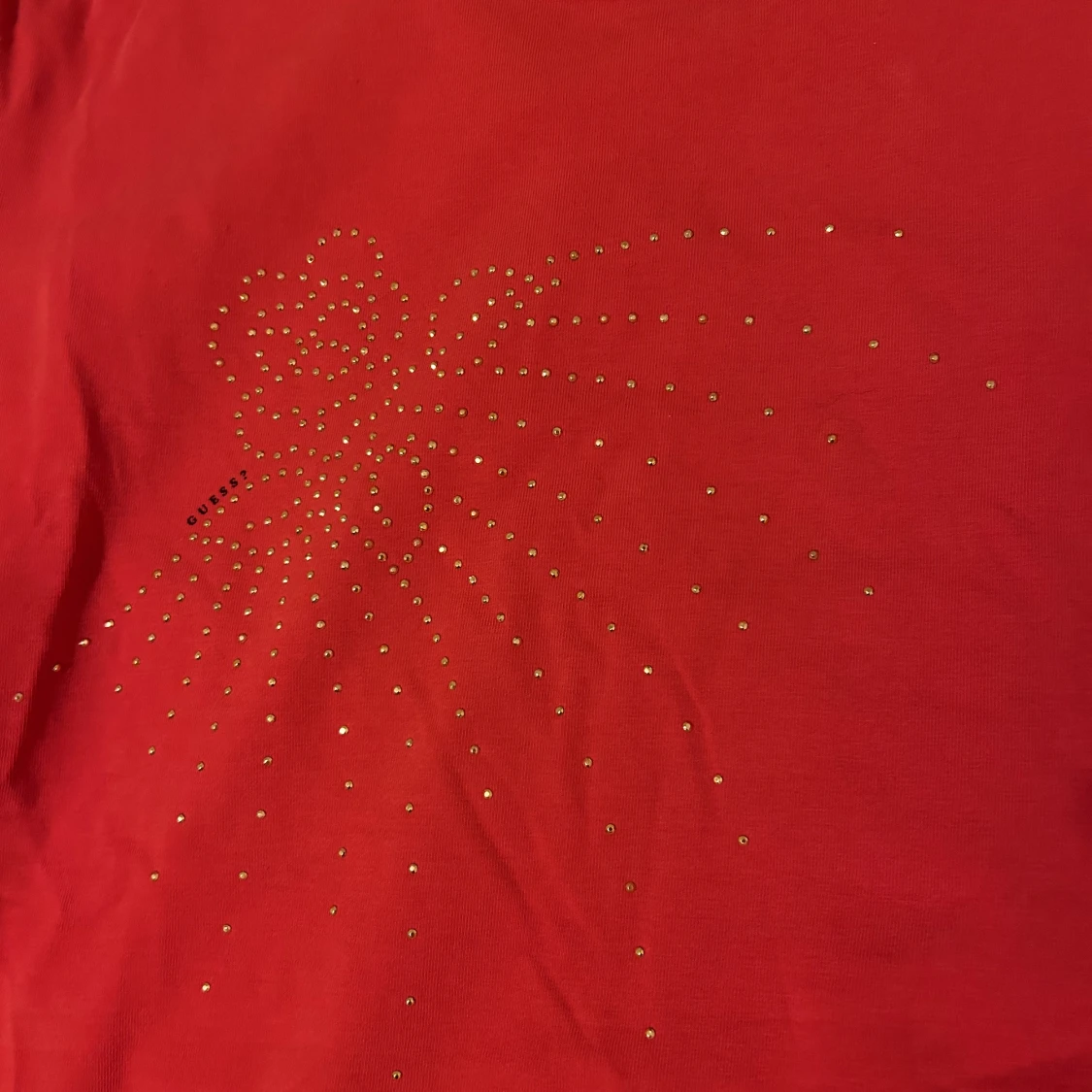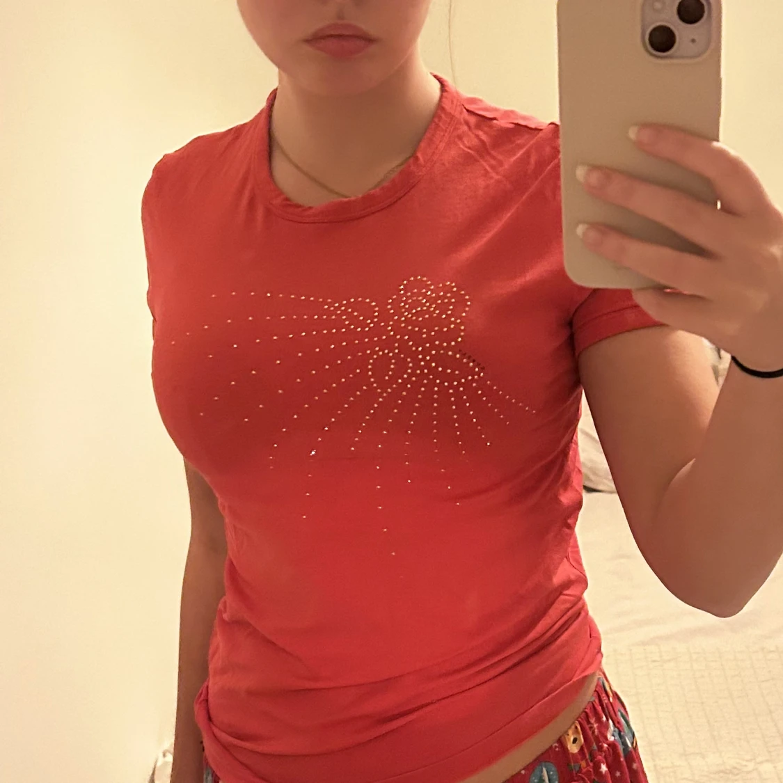 Jättefin rosaröd Teeshirt med rinestones tryck av en ros. Jätteskönt material! Tyvärr står inte storleken men skulle gissa s 💕💕