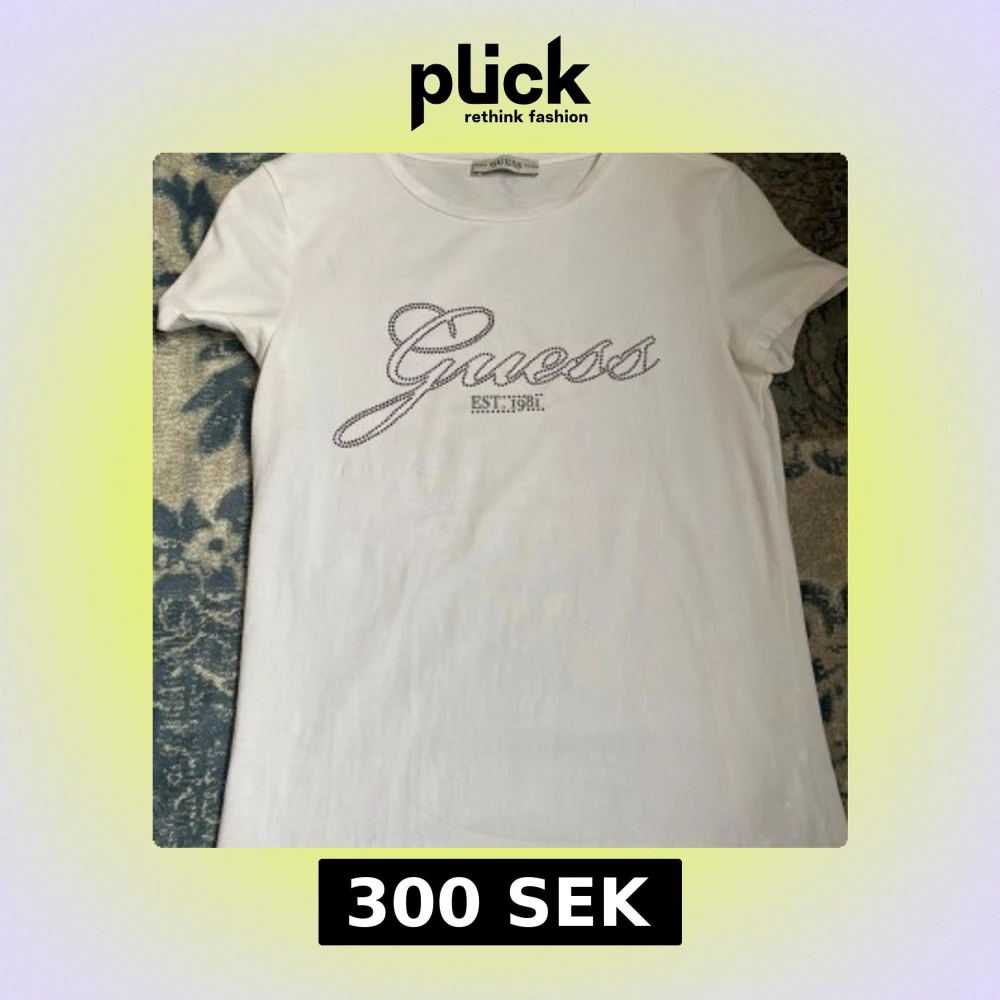 T-shirt från Guess med tryckt med lila diamanter, knappt använd trots de har den en fläck men de går säkert bort i tvätten💜