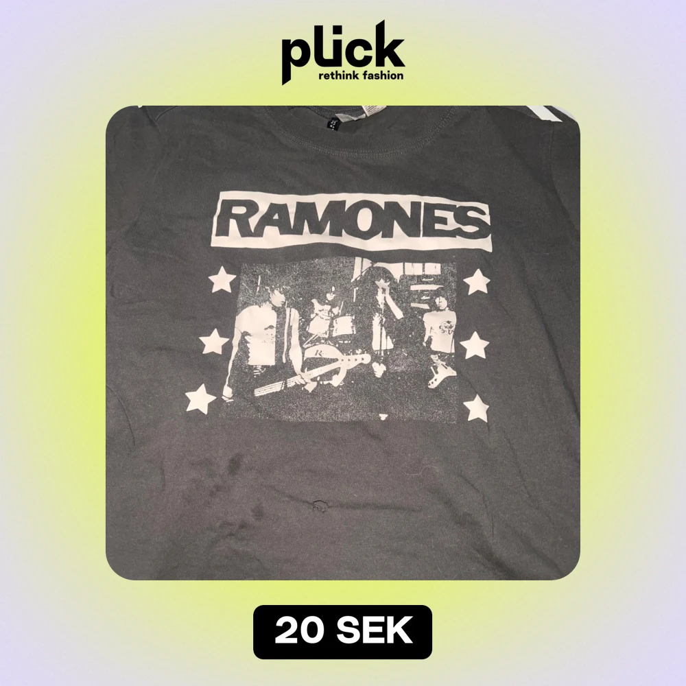 Säljer en grå Ramones t-shirt från Divided i bomull. Den har ett coolt tryck av bandet på framsidan med stjärnor runt. T-shirten är i acceptabelt skick med ett litet hål på framsidan. Perfekt för en avslappnad stil eller konsertkväll! 🎸